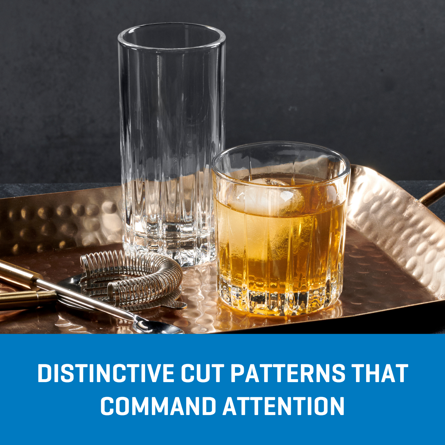 - DISTINCTIVE DESIGN: This high-end highball glass features a cut crystal pattern inspired by the tracings of Renaissance design, blending past, present, and future.