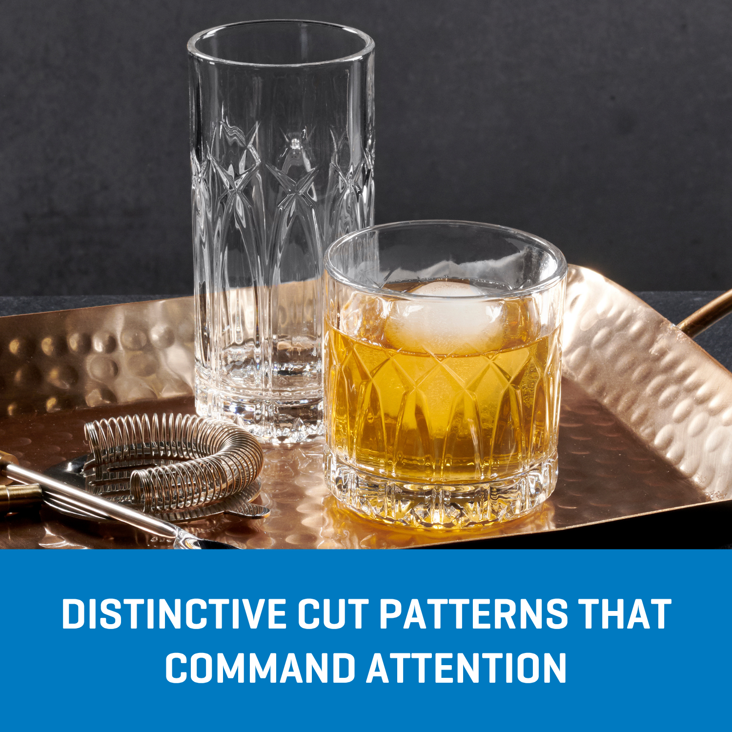 - DISTINCTIVE DESIGN: This high-end highball glass features a cut crystal pattern inspired by the tracings of Renaissance design, blending past, present, and future.